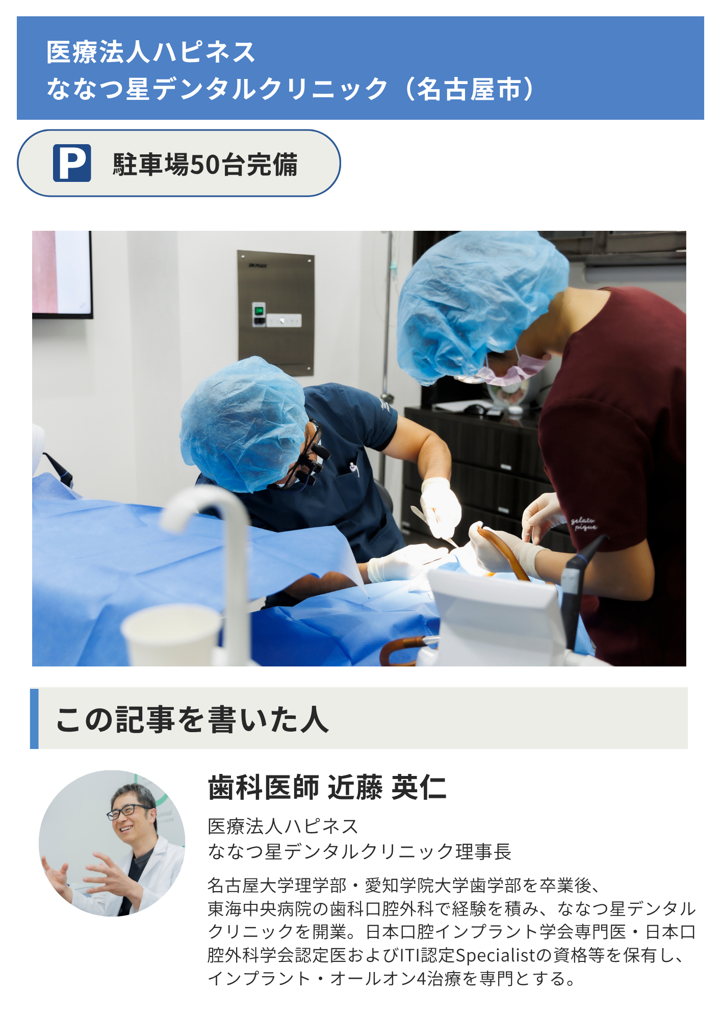 インプラント手術:平日・土曜 毎日対応 +月1回 日曜特別手術日あり